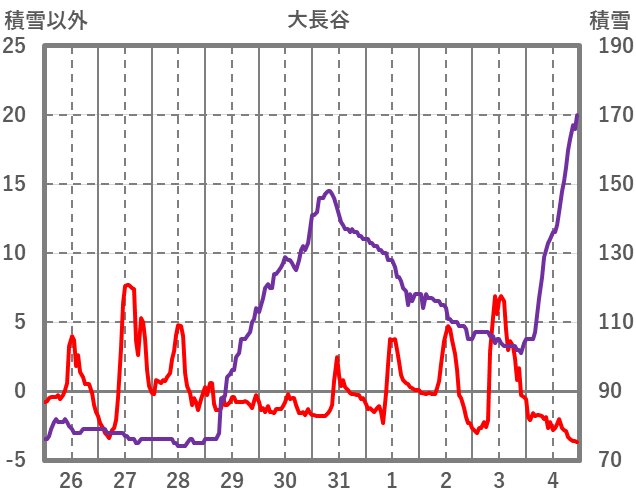 | 日 | 時 | 気温 | 降水 | 風向/風速 | 日照 | 積雪 | 降雪 |
