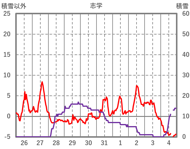 | 日 | 時 | 気温 | 降水 | 風向/風速 | 日照 | 積雪 | 降雪 |