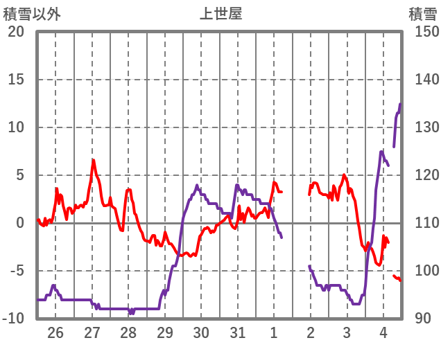 | 日 | 時 | 気温 | 降水 | 風向/風速 | 日照 | 積雪 | 降雪 |