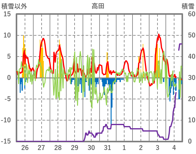 | 日 | 時 | 気温 | 降水 | 風向/風速 | 日照 | 積雪 | 降雪 |