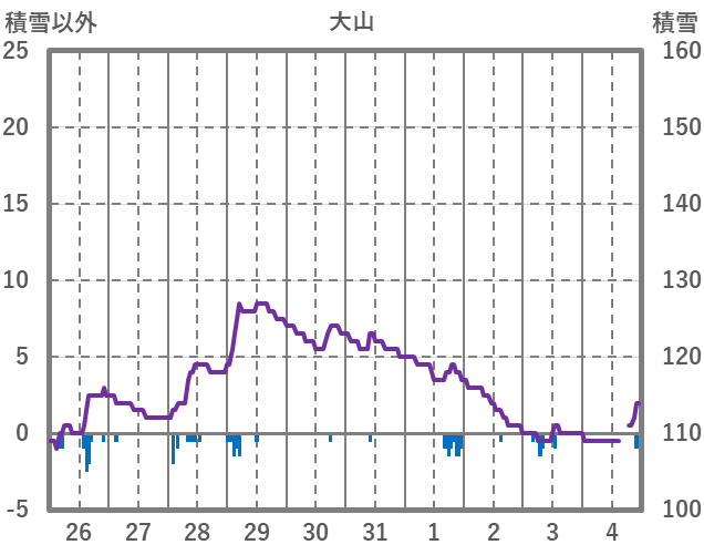 | 日 | 時 | 気温 | 降水 | 風向/風速 | 日照 | 積雪 | 降雪 |