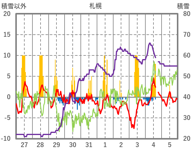 | 日 | 時 | 気温 | 降水 | 風向/風速 | 日照 | 積雪 | 降雪 |