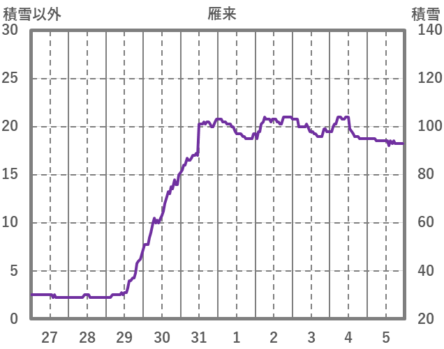 | 日 | 時 | 気温 | 降水 | 風向/風速 | 日照 | 積雪 | 降雪 |