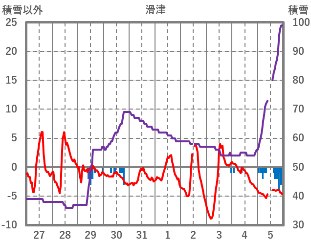 | 日 | 時 | 気温 | 降水 | 風向/風速 | 日照 | 積雪 | 降雪 |