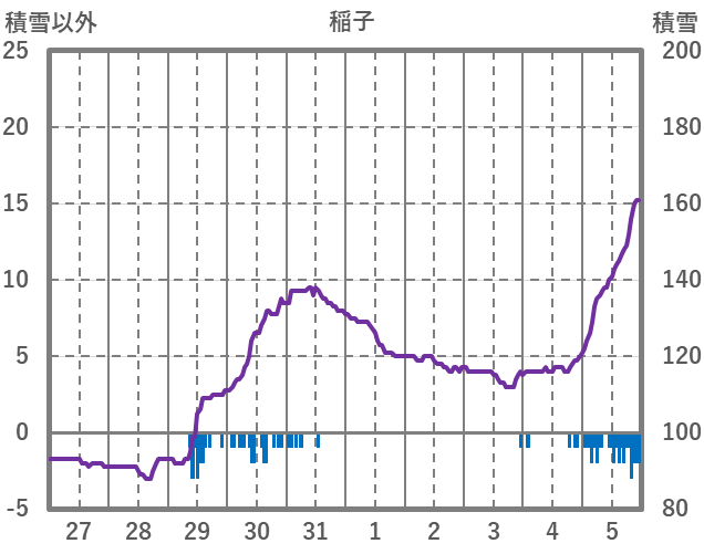 | 日 | 時 | 気温 | 降水 | 風向/風速 | 日照 | 積雪 | 降雪 |
