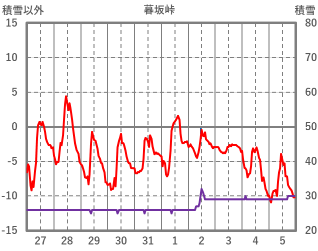 | 日 | 時 | 気温 | 降水 | 風向/風速 | 日照 | 積雪 | 降雪 |