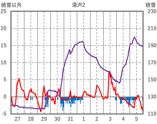 | 日 | 時 | 気温 | 降水 | 風向/風速 | 日照 | 積雪 | 降雪 |