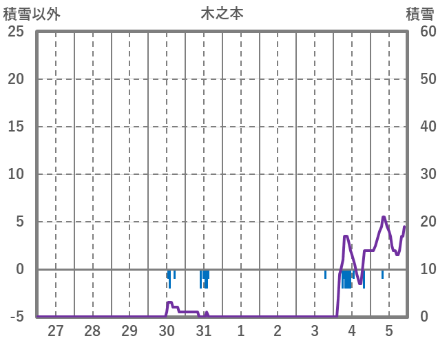 | 日 | 時 | 気温 | 降水 | 風向/風速 | 日照 | 積雪 | 降雪 |