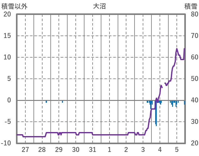 | 日 | 時 | 気温 | 降水 | 風向/風速 | 日照 | 積雪 | 降雪 |