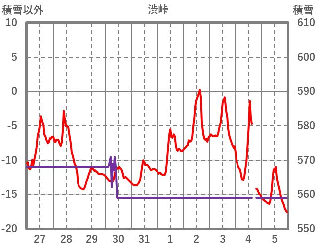 | 日 | 時 | 気温 | 降水 | 風向/風速 | 日照 | 積雪 | 降雪 |