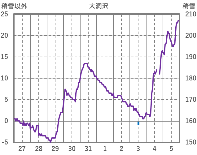 | 日 | 時 | 気温 | 降水 | 風向/風速 | 日照 | 積雪 | 降雪 |