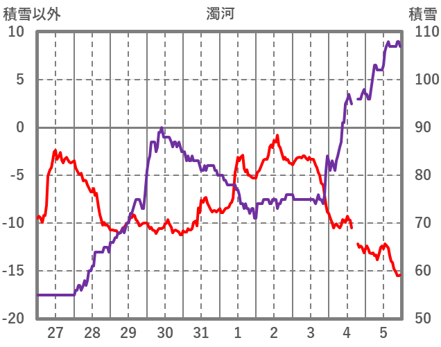 | 日 | 時 | 気温 | 降水 | 風向/風速 | 日照 | 積雪 | 降雪 |