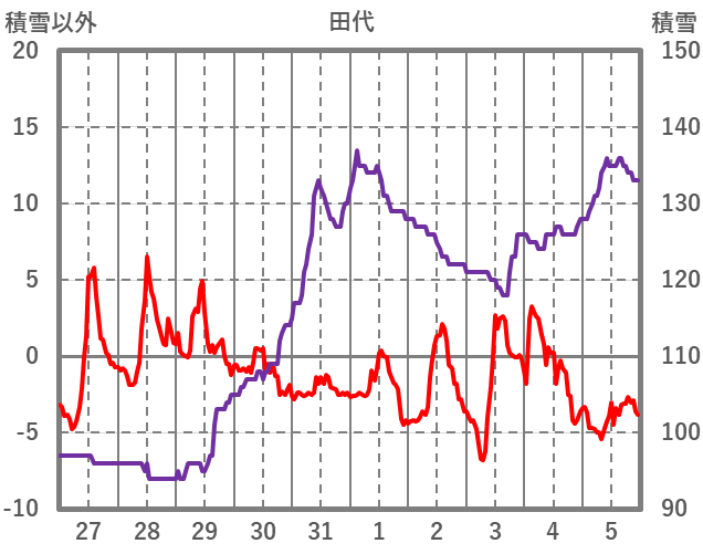 | 日 | 時 | 気温 | 降水 | 風向/風速 | 日照 | 積雪 | 降雪 |