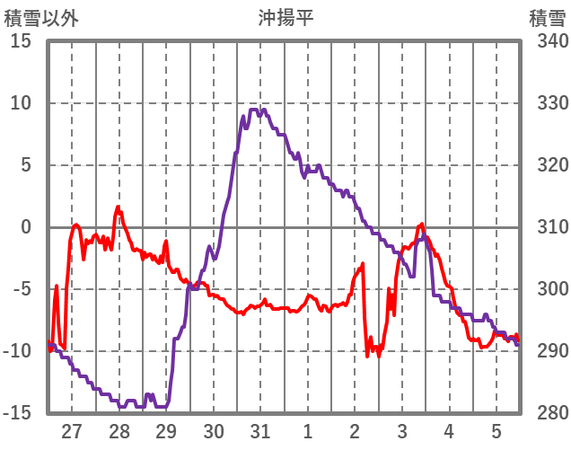 | 日 | 時 | 気温 | 降水 | 風向/風速 | 日照 | 積雪 | 降雪 |