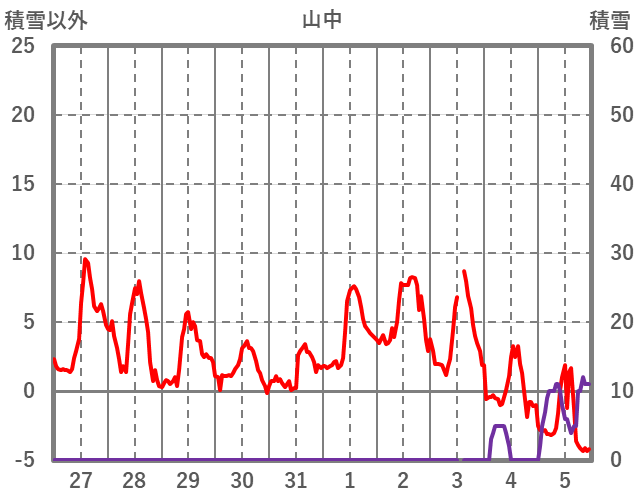 | 日 | 時 | 気温 | 降水 | 風向/風速 | 日照 | 積雪 | 降雪 |