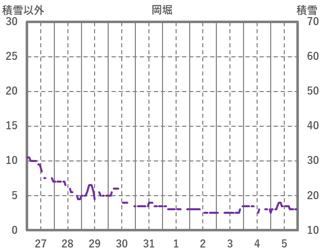 | 日 | 時 | 気温 | 降水 | 風向/風速 | 日照 | 積雪 | 降雪 |