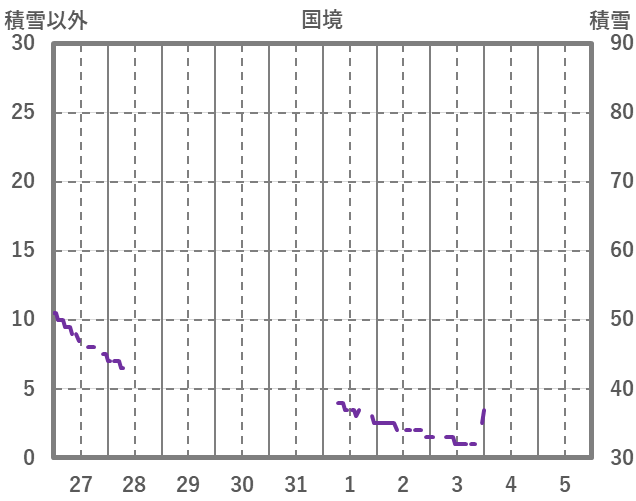 | 日 | 時 | 気温 | 降水 | 風向/風速 | 日照 | 積雪 | 降雪 |