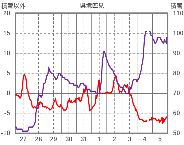 | 日 | 時 | 気温 | 降水 | 風向/風速 | 日照 | 積雪 | 降雪 |