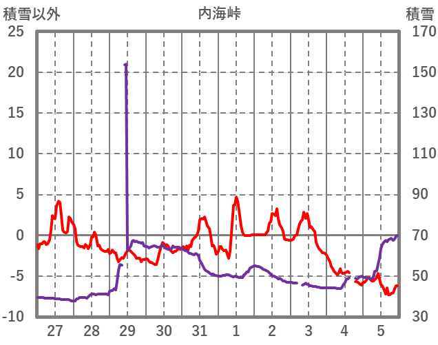 | 日 | 時 | 気温 | 降水 | 風向/風速 | 日照 | 積雪 | 降雪 |
