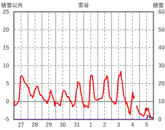 | 日 | 時 | 気温 | 降水 | 風向/風速 | 日照 | 積雪 | 降雪 |