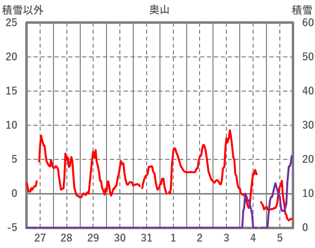 | 日 | 時 | 気温 | 降水 | 風向/風速 | 日照 | 積雪 | 降雪 |