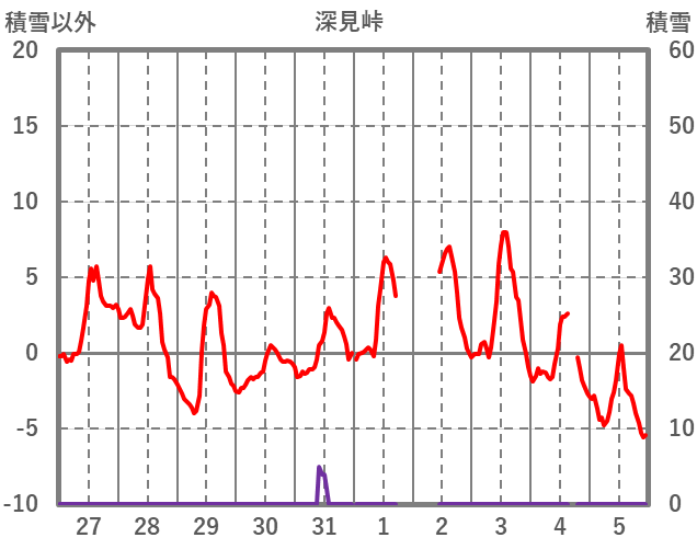| 日 | 時 | 気温 | 降水 | 風向/風速 | 日照 | 積雪 | 降雪 |
