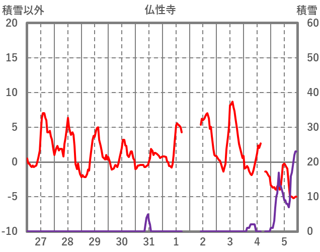| 日 | 時 | 気温 | 降水 | 風向/風速 | 日照 | 積雪 | 降雪 |