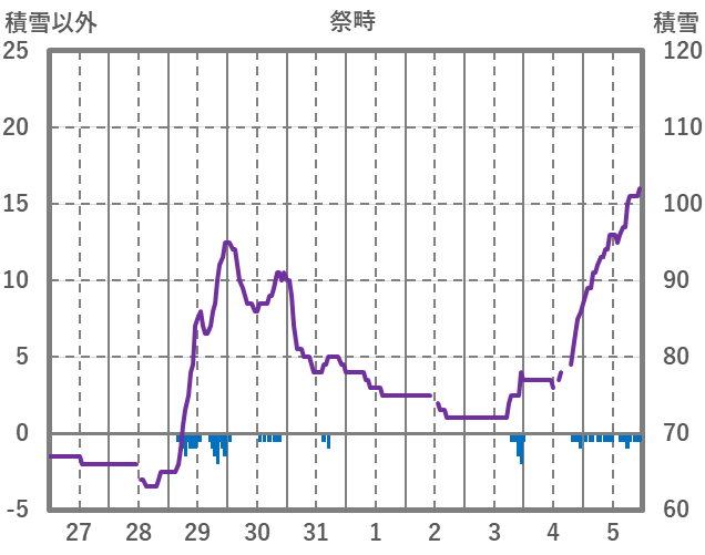 | 日 | 時 | 気温 | 降水 | 風向/風速 | 日照 | 積雪 | 降雪 |