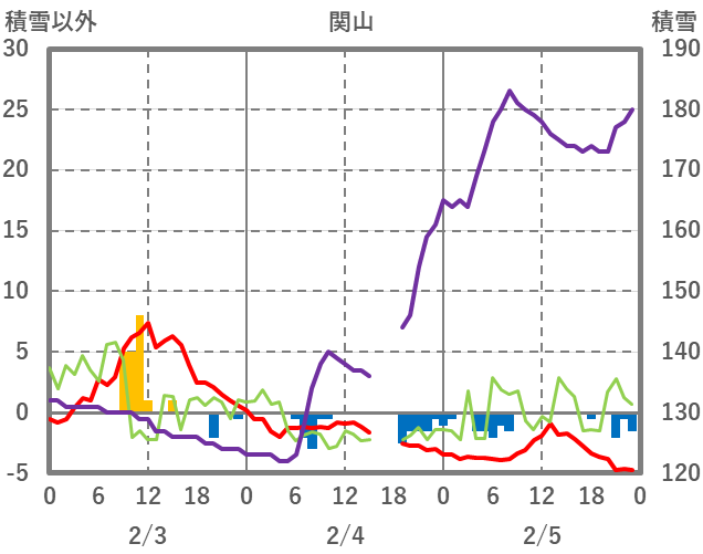 | 日 | 時 | 気温 | 降水 | 風向/風速 | 日照 | 積雪 | 降雪 |