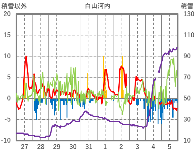 | 日 | 時 | 気温 | 降水 | 風向/風速 | 日照 | 積雪 | 降雪 |