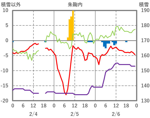 | 日 | 時 | 気温 | 降水 | 風向/風速 | 日照 | 積雪 | 降雪 |
