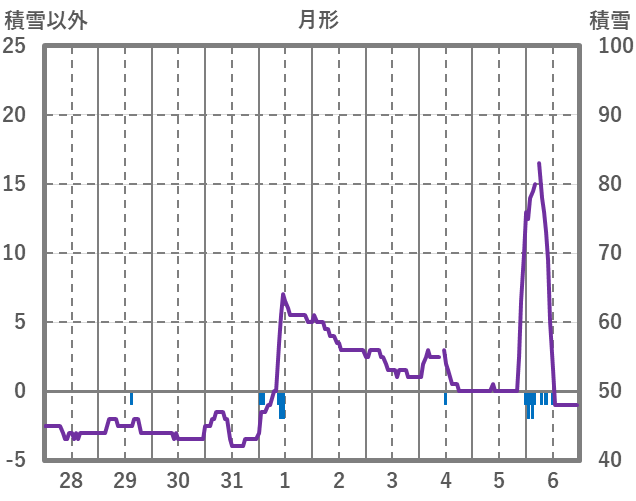 | 日 | 時 | 気温 | 降水 | 風向/風速 | 日照 | 積雪 | 降雪 |