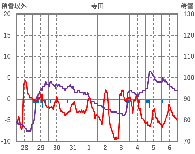 | 日 | 時 | 気温 | 降水 | 風向/風速 | 日照 | 積雪 | 降雪 |