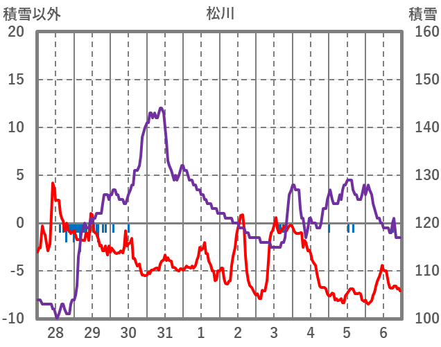 | 日 | 時 | 気温 | 降水 | 風向/風速 | 日照 | 積雪 | 降雪 |