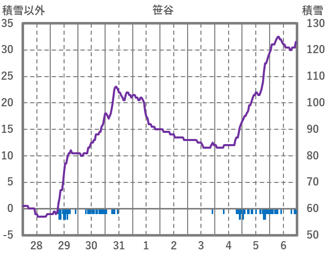 | 日 | 時 | 気温 | 降水 | 風向/風速 | 日照 | 積雪 | 降雪 |