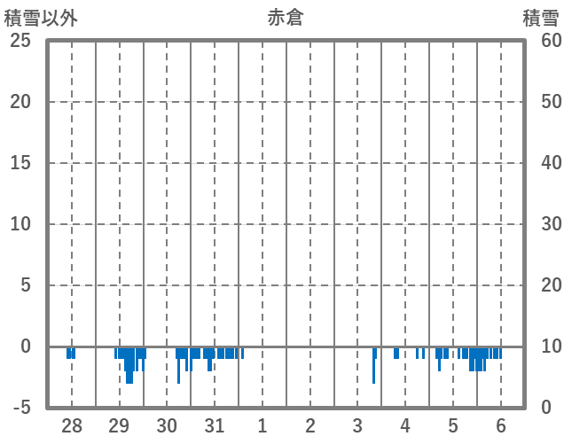 | 日 | 時 | 気温 | 降水 | 風向/風速 | 日照 | 積雪 | 降雪 |