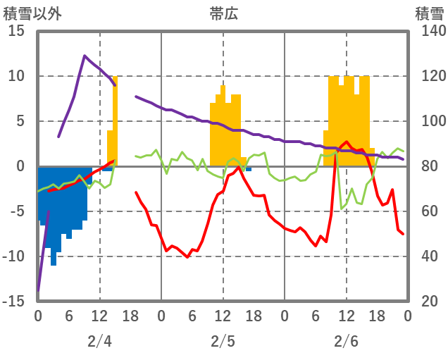 | 日 | 時 | 気温 | 降水 | 風向/風速 | 日照 | 積雪 | 降雪 |