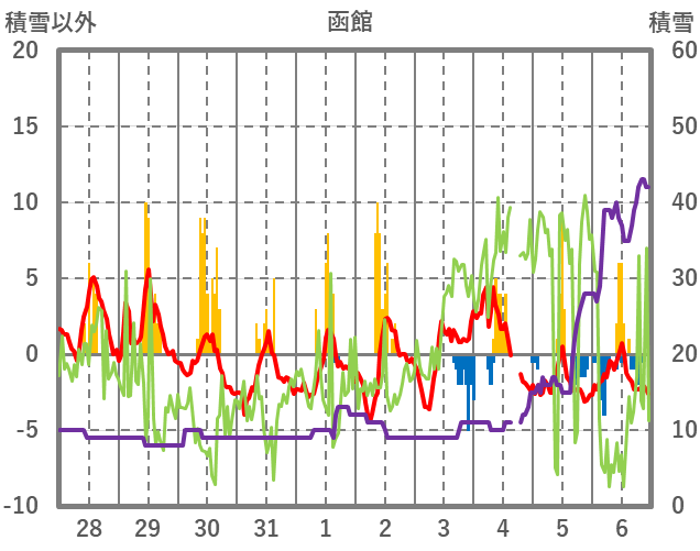 | 日 | 時 | 気温 | 降水 | 風向/風速 | 日照 | 積雪 | 降雪 |