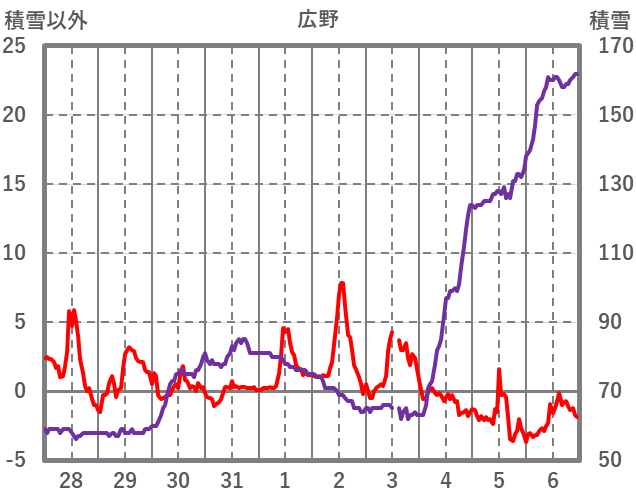 | 日 | 時 | 気温 | 降水 | 風向/風速 | 日照 | 積雪 | 降雪 |