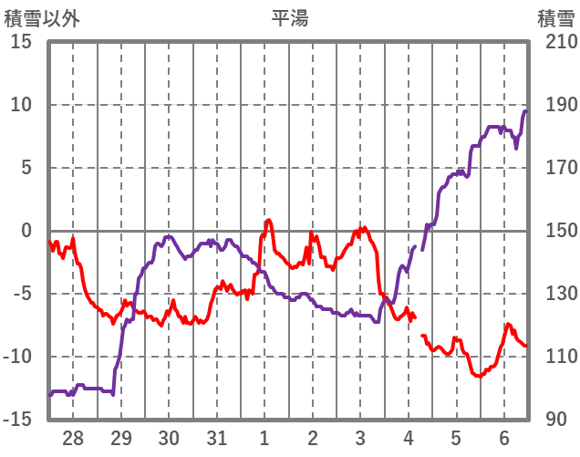 | 日 | 時 | 気温 | 降水 | 風向/風速 | 日照 | 積雪 | 降雪 |