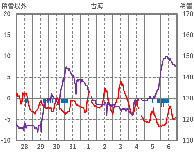 | 日 | 時 | 気温 | 降水 | 風向/風速 | 日照 | 積雪 | 降雪 |