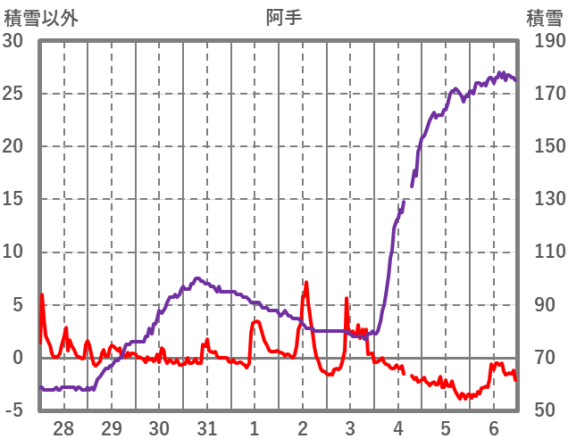 | 日 | 時 | 気温 | 降水 | 風向/風速 | 日照 | 積雪 | 降雪 |