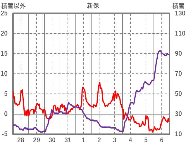 | 日 | 時 | 気温 | 降水 | 風向/風速 | 日照 | 積雪 | 降雪 |