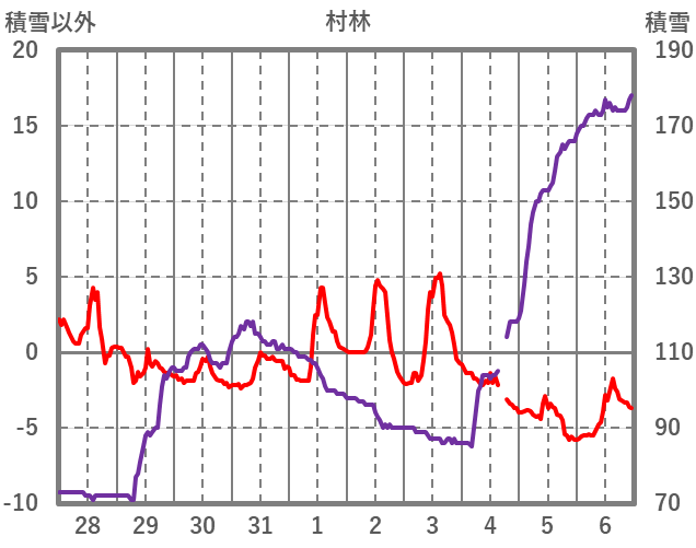 | 日 | 時 | 気温 | 降水 | 風向/風速 | 日照 | 積雪 | 降雪 |
