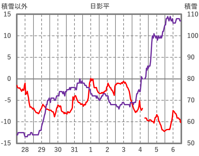 | 日 | 時 | 気温 | 降水 | 風向/風速 | 日照 | 積雪 | 降雪 |