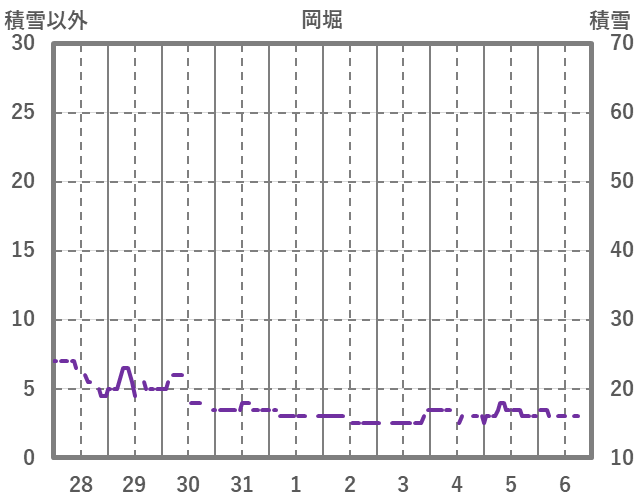 | 日 | 時 | 気温 | 降水 | 風向/風速 | 日照 | 積雪 | 降雪 |