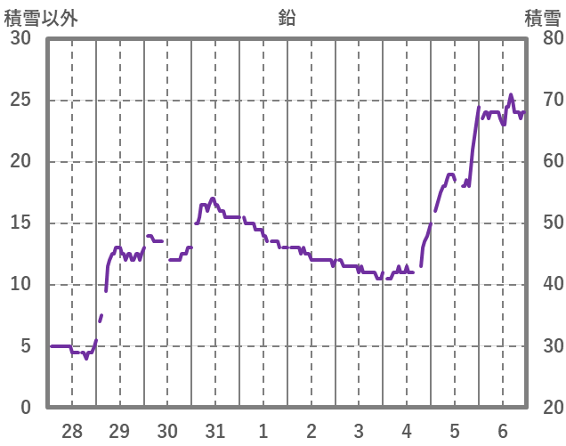 | 日 | 時 | 気温 | 降水 | 風向/風速 | 日照 | 積雪 | 降雪 |
