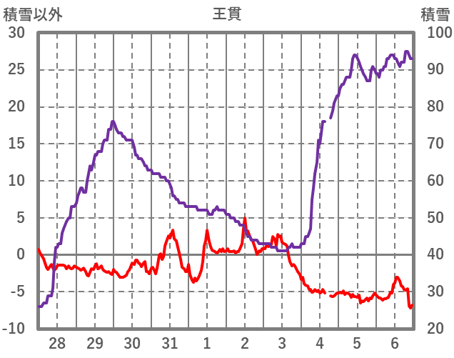 | 日 | 時 | 気温 | 降水 | 風向/風速 | 日照 | 積雪 | 降雪 |