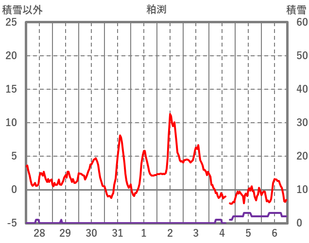 | 日 | 時 | 気温 | 降水 | 風向/風速 | 日照 | 積雪 | 降雪 |