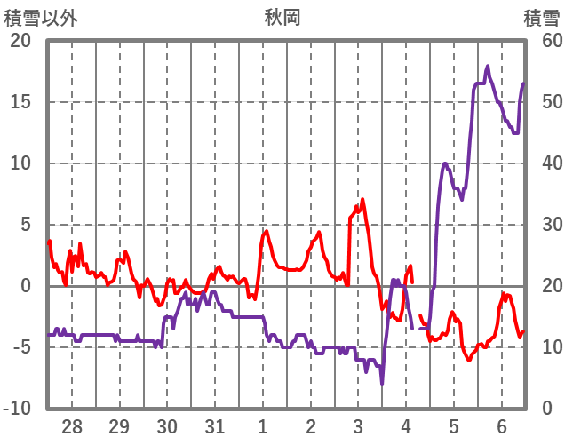 | 日 | 時 | 気温 | 降水 | 風向/風速 | 日照 | 積雪 | 降雪 |